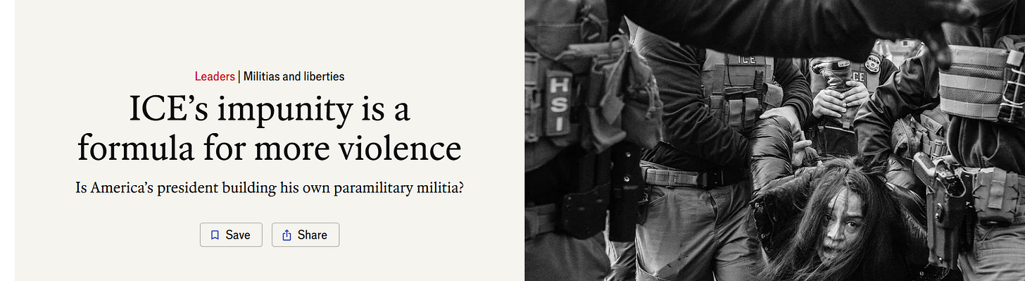 The denunciation of masking by federal agents is a case in point: agents are threatened with doxing by Antifa and others, and The Economist ought to know that.